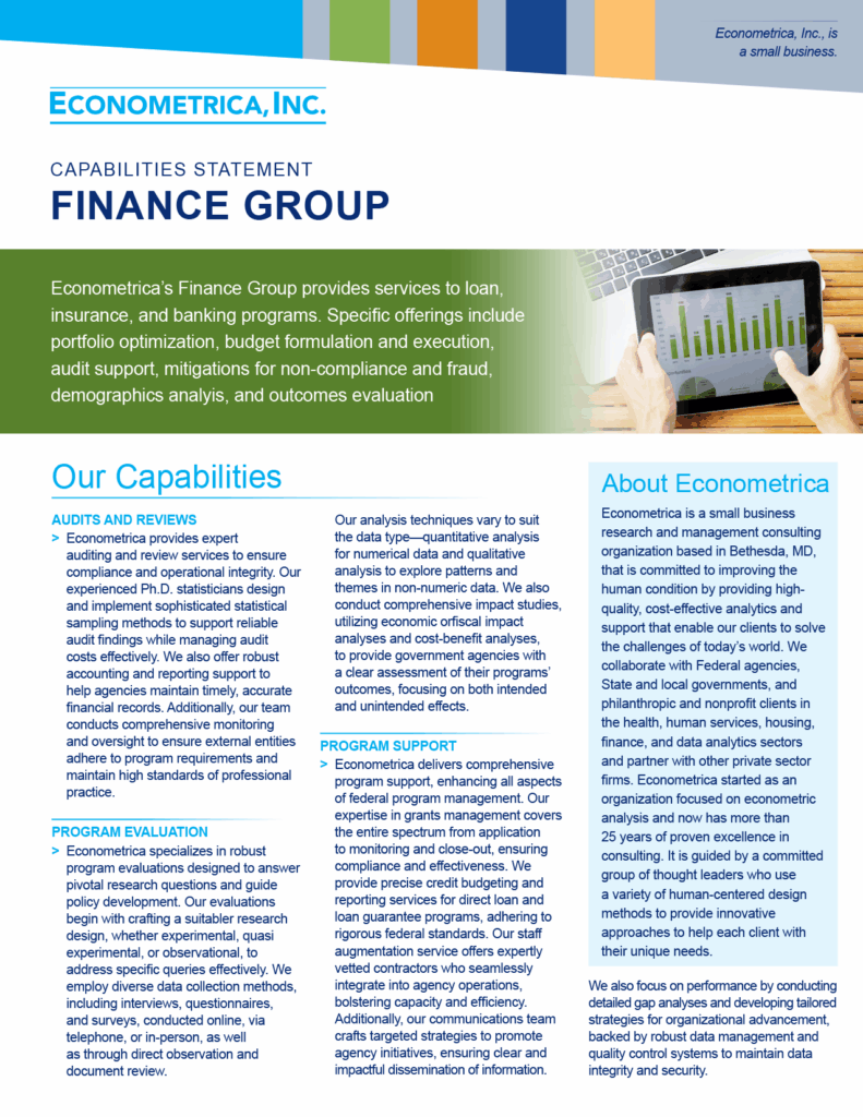 Key Work Areas: Compliance and Generally Accepted Government Auditing Standards (GAGAS) audits, healthcare industry and provider assessments, fraud and waste research and analytics, artificial intelligence/machine learning, database compilation, civil monetary penalty models, regulatory support, cross-contractor collaboration